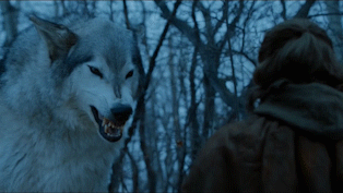 Nymeria inizialmente sembra non riconoscere la ragazza, ma Arya non demorde e abbassa la spada nonostante le fauci da cucciolo di T-rex all’altezza della sua testa.