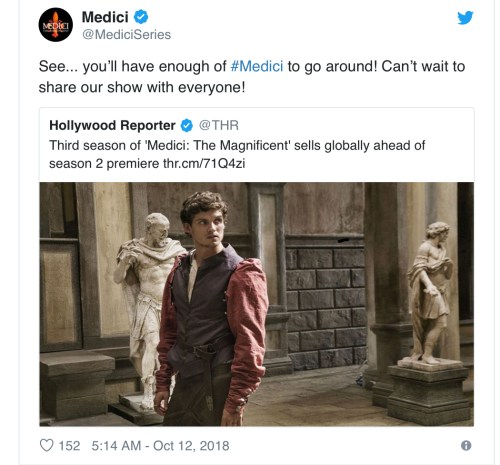Le riprese apparentemente sono già cominciate. Preghiamo solo che il casting della terza stagione ci offra pari talenti quali quelli che abbiamo dovuto salutare. Per ora, al cast si sono aggiunti William Franklyn-Miller (Arrow), Jack Roth (Britannia, Bohemian Rhapsody) e Francesco Montanari (Romanzo Criminale) nei panni di Girolamo Savonarola (lo sappiamo che Savonarola nessuno lo vuole, però ce lo dobbiamo tenere, che dobbiamo fà?)