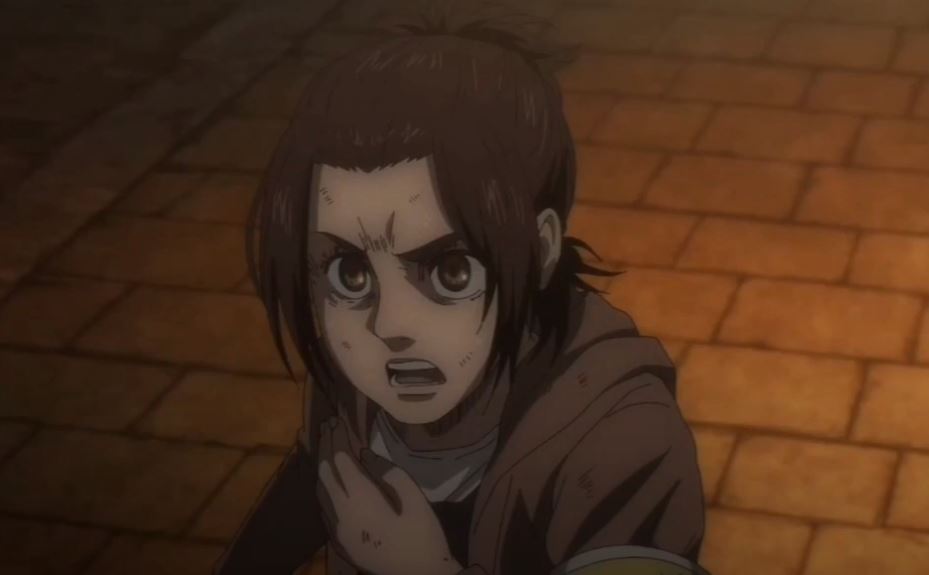 Eren racconta che dopo gli eventi accaduti ritiene che lui e Reiner siano molto simili, ma il primo vuole la libertà e per questo, dopo che Tybur dichiara guerra all’isola Paradise Eren si trasforma in Gigante.